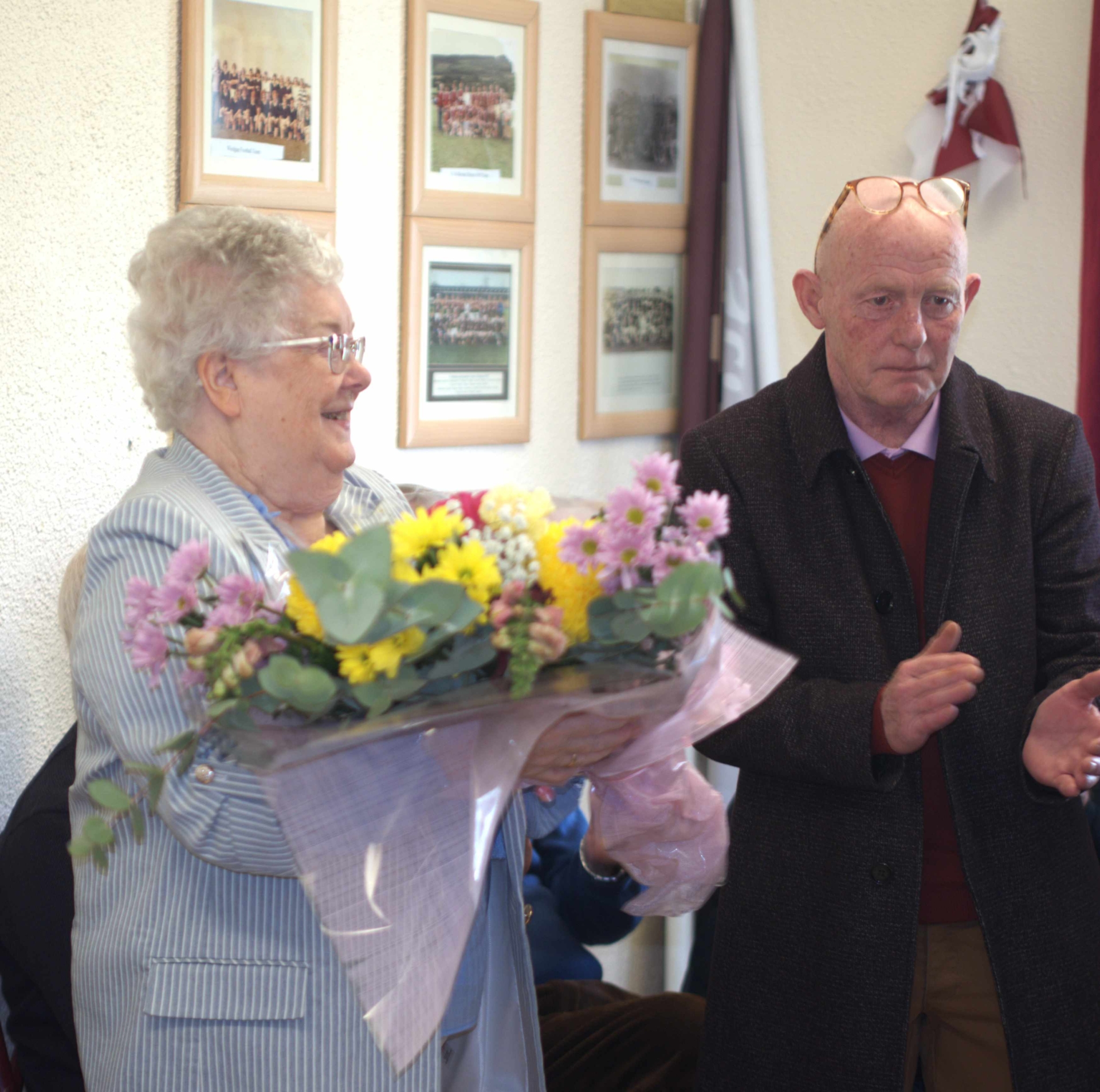 A beautiful bouquet of flowers was presented to Maureen Finucane as a nostalgic afternoon filled with great humour and rich memories of St Molleran’s GAA Club unfolded among friends, family and club members in honour of the much loved and highly respected club member Paddy Finucane.