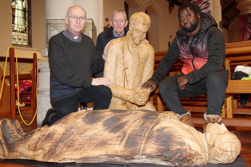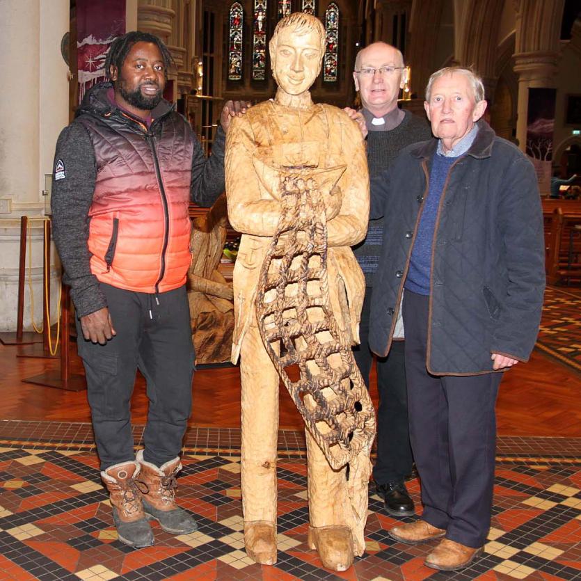 Paradzai Havatitye, who is originally from Zimbabwe, has captured the essence of the spirit and soul of Fr Alec Reid, Sr Bernard Quigley and Fr Dan Fitzgerald in three oak carved statues he has created and which are now in situ in St Mary of the Rosary Church.