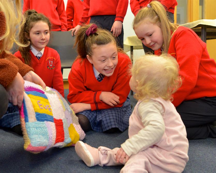 Kay Doherty, who teaches knitting to 5th & 6th class, also presented Eve with a beautiful pillow that was knitted by the children.