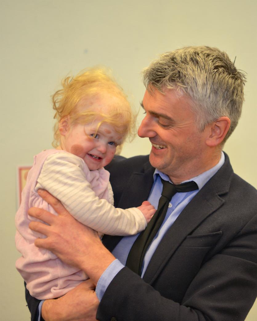 Eve’s Mammy Sabrina was very grateful for all the support. “We are kept busy with Eve’s condition and it’s very difficult to not think about it too much. It is the love and support of the community that keeps us going and we have to take each day as it comes. Eve has needed five more surgeries due to shunt blockages and infections, all complications related to her condition, resulting in lots of time away from home. I remember when Eve spent her first birthday in Temple Street and I turned to my husband Robbie and said, ‘we need help’. It’s a difficult decision to go public but we have received a tremendous amount of support that has helped us cope with everything. When Eve was born, I was worried what people might think of her appearance but now everyone shows her so much love and she is the most happiest, lovable little girl. Thank you for this fundraiser and thank you to everyone who has supported us.”