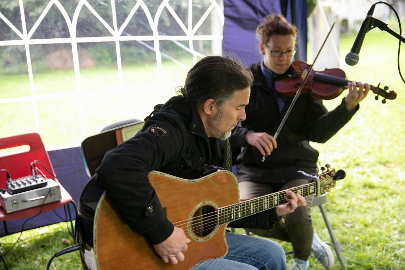 At midday, a lovely crowd gathered for the Community Picnic Feast under the magnificent yew trees to eat, mingle and relax while listening to live music from Brian and Camilla. There were dishes from all over the world being shared, from apple pie and vegetarian moussaka to delicious meat-filled dumplings. The Community Feast Food Challenge judges, Kay McGonigle of Mai’s Café and Shannon Forrest of Rivesci, had the tasty task of sampling all the dishes entered for the challenge and the unenviable task of picking the winners!