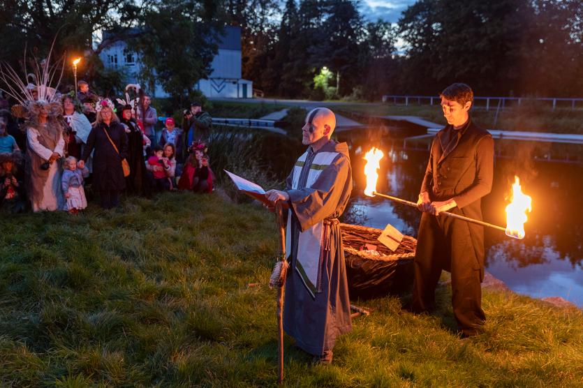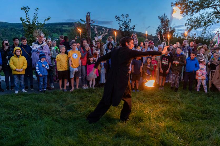 The day finished with the much-anticipated harvest procession which was the culmination of several workshops and brought together numerous performers, artists and families who were delighted to take over the streets of Irishtown. They marched towards the convent bridge to witness a ‘release’ ritual and some skilled fire juggling by the river.