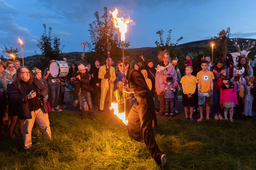 The procession then snaked its way back to Suir Island for a finale fire spectacle by the Rogú Arts Company celebrating the end of harvest time and the start of the dark winter season.