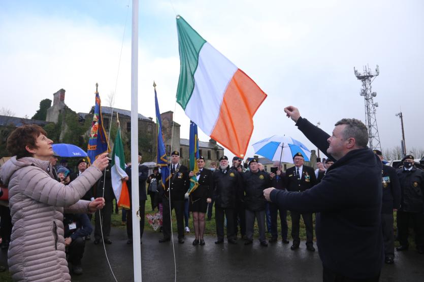 The national flag was raised by John Lawlor, a grand-nephew of Capt Terence Byrne who took over Nenagh military barracks on behalf of the fledgling new State, and Una Walsh, a niece of Capt Tom Walsh from Kyle who led the local Tipperary contingent that occupied the barracks.
