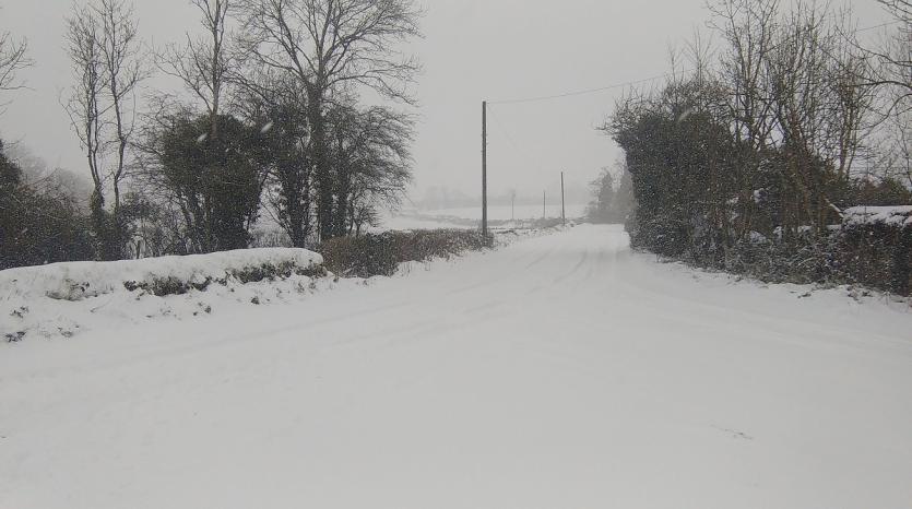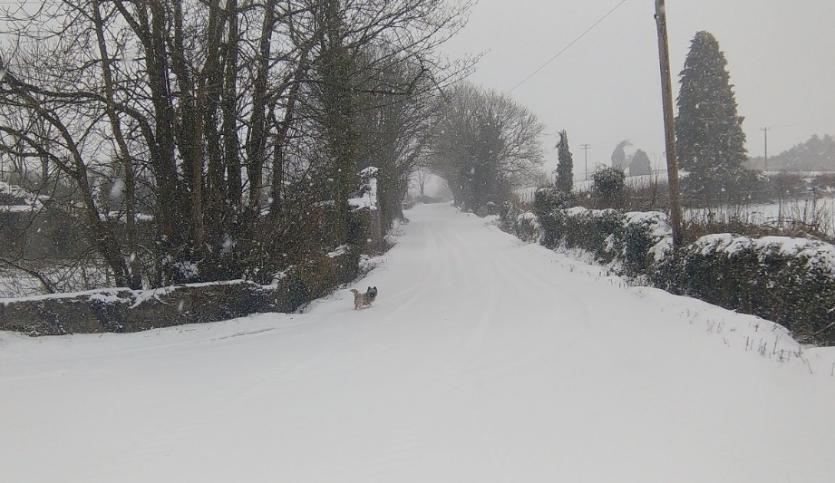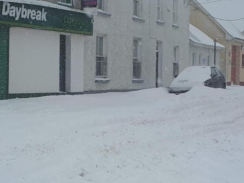 It is still snowing in Ballingarry and it doesn't look like it is going to stop any time soon. Since early morning snow has been falling around the parish and the main street in the village is virtually impassable. The road outside the Doctor's surgery has snow drifts making it almost impassable.