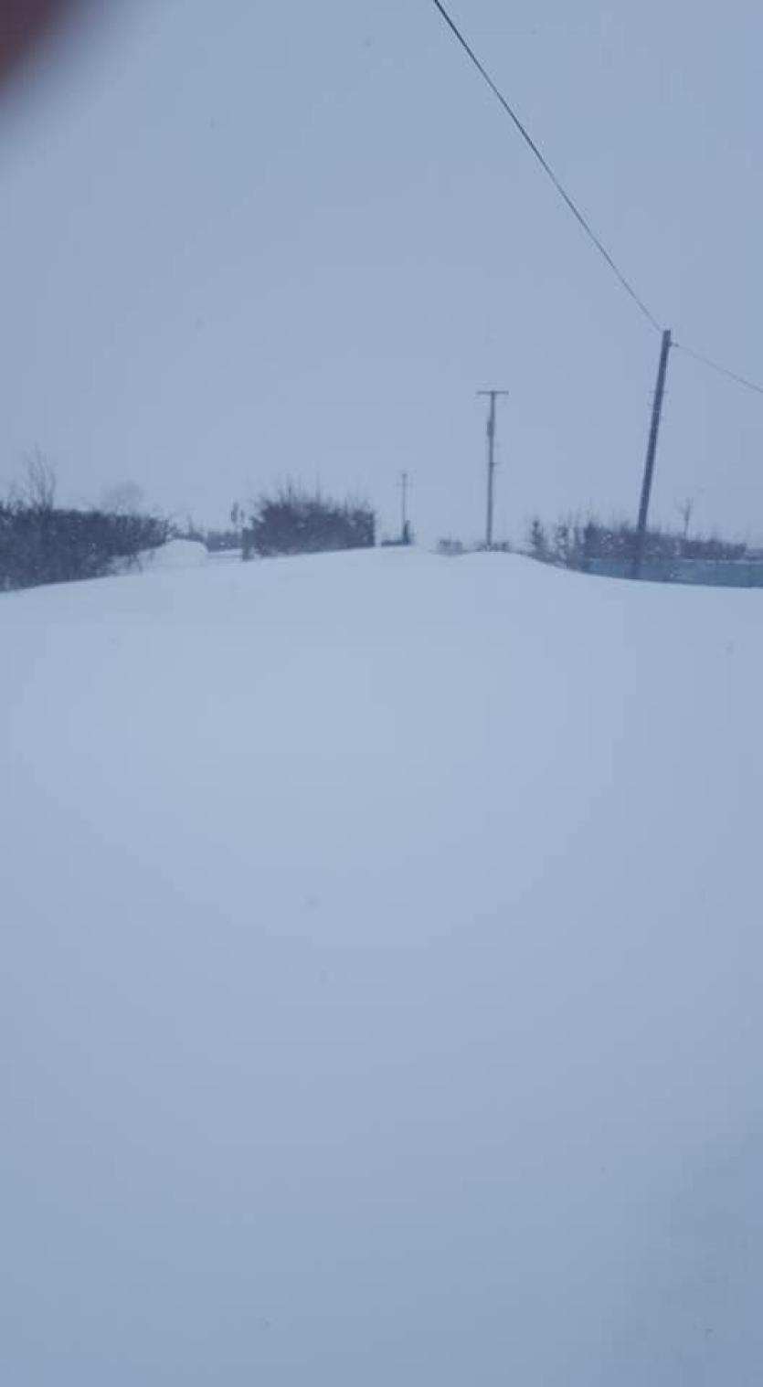 The temperature is currently -2 with lots of drifting of snow along the roads. A local farmer reported seeing a 6ft drift just off Boulea Hill this morning.