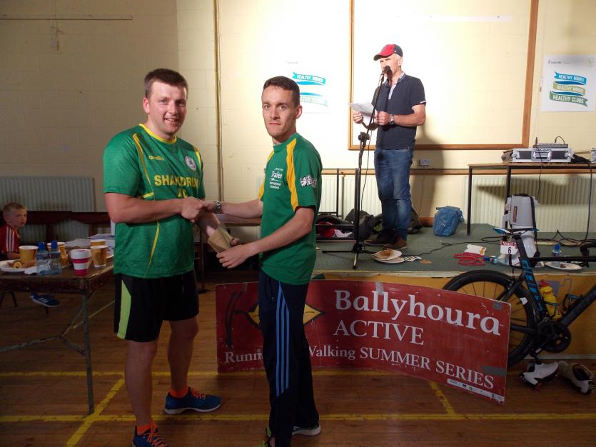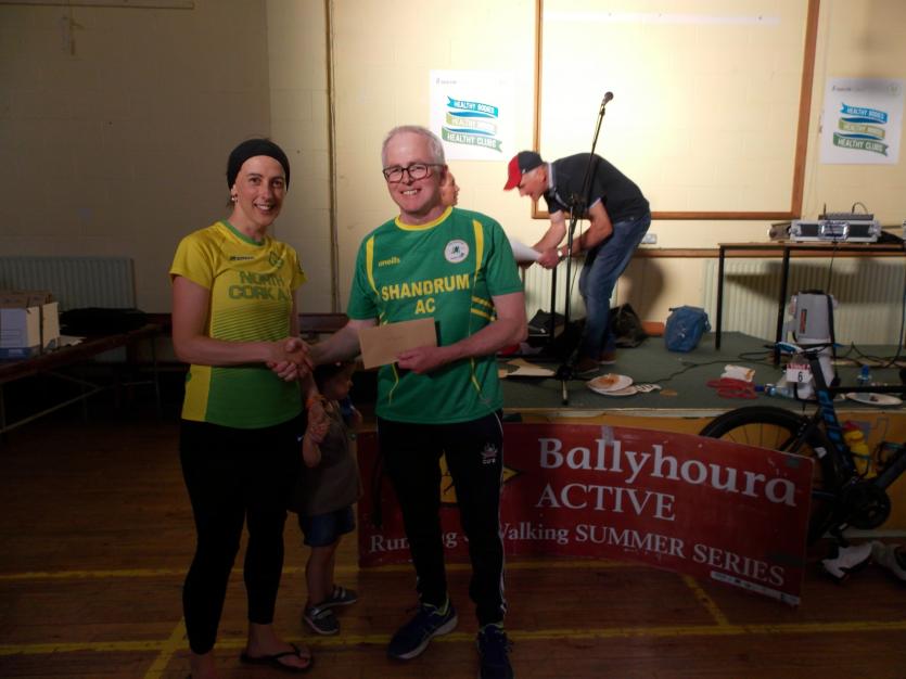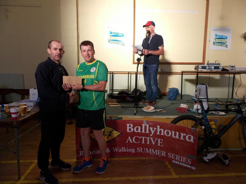 We were in Newtownshandrum on Friday night for the most recent instalment in the Ballyhoura Active series. Shandrum AC had changed the route from Last year and chopped a mile off of it. The race started near the grotto at the top hill on the way down to Newtownshandrum. The race was run in reverse to last years and as it started so high there was a lot of fast downhill running. But there was a little sting in the tail as there was a hill in the last half mile a lot of people found that tough but all agreed that it was a great route. Some said the heat was a factor as well but how can we complain we so seldom get heat. Michael Corbett st Finbarr’s AC took the win in 20.48 in warm conditions followed by Declan Guina West Limerick AC and 3rd was Finbarr O Dwyer Leevale AC. The Ladies were led home by Martina Kiely St Finbarr’s AC ran 24.06 2nd was Sinead Buckley North Cork AC and 3rd was Annette O Reilly Kilfinane AC. It was great to see local ladies doing so well and improving over the series, great new talent in the area growing with each race. Numbers were well up on last year and the stewarding was top class, so well done to Noel and all the crew in Shandrun AC.