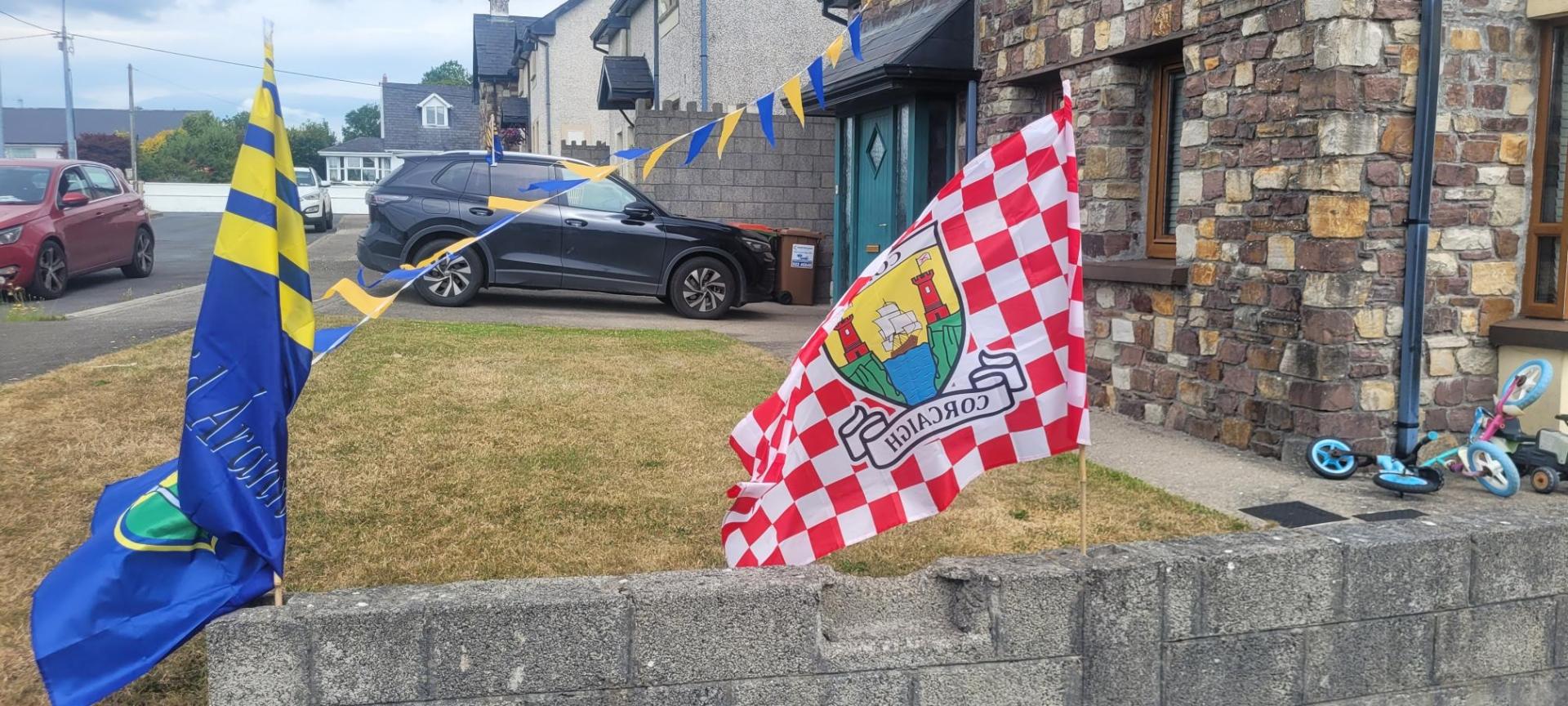 A home in Clogheen has two supports shouting for different teams on Sunday.