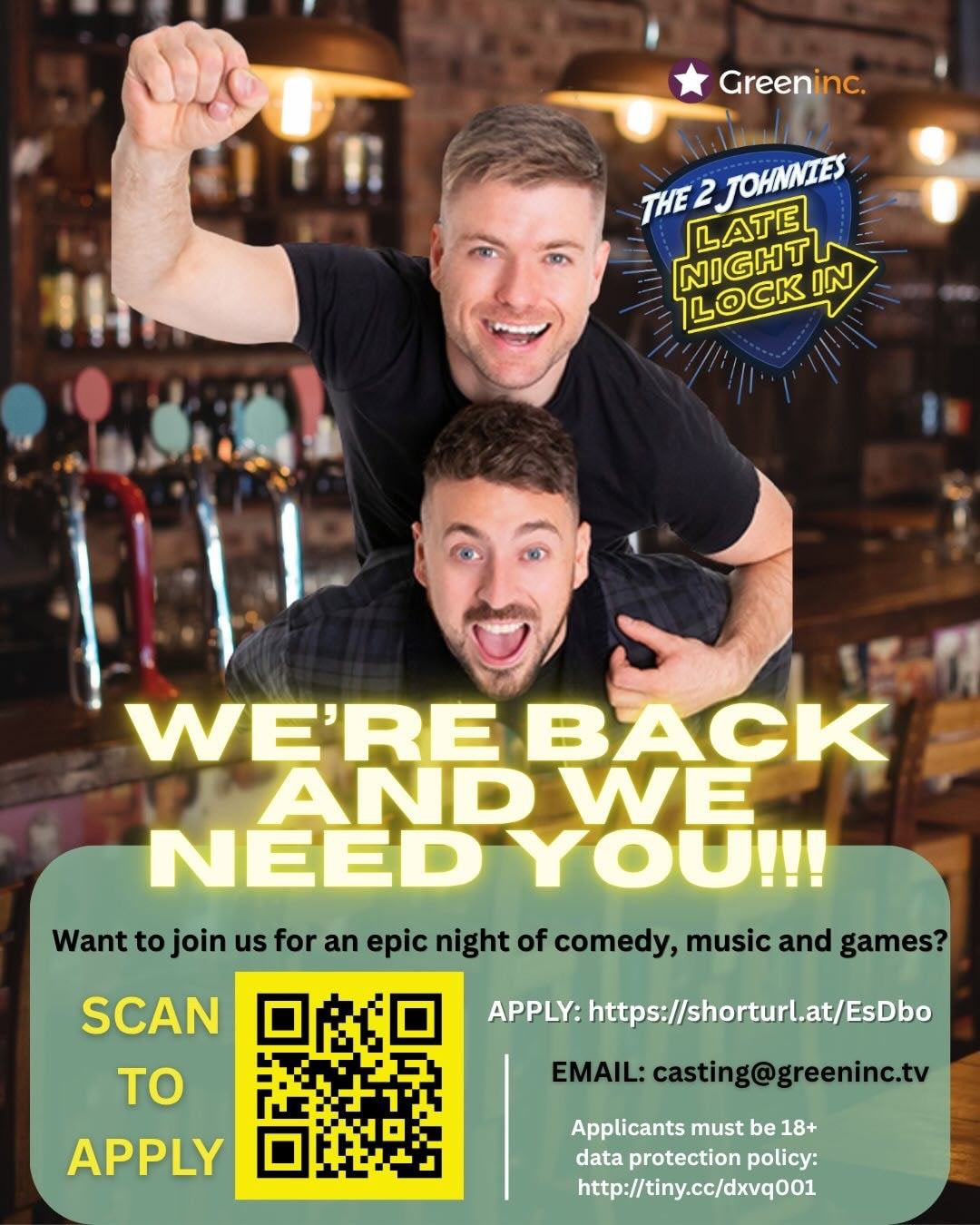 The 2 Johnnies team is on the lookout for parish quizzers from Cahir, Co Tipperary to represent their town in the final show of The 2 Johnnies Late Night Lock-In!