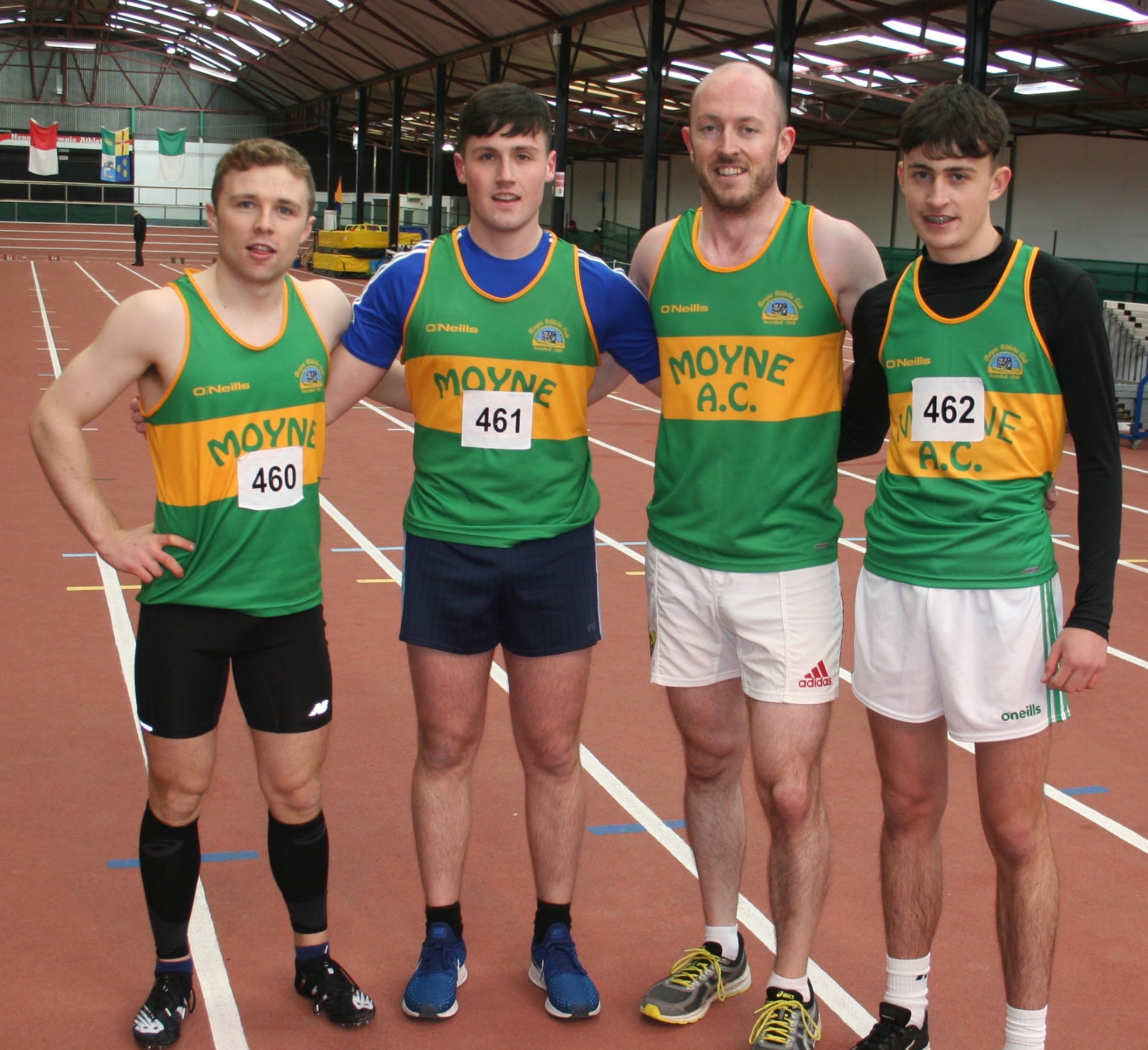 Pictured below Moyne AC 4x200m relay team, silver medallists at Co. Tipperary Indoor Championships in Nenagh on Sunday last. Left to right: Jack Hickey, Nathan Bowe, Ciaran Dwyer, Paul Molony