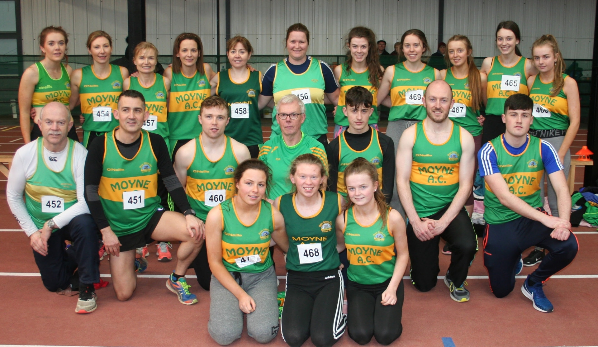 Pictured below Moyne AC athletes who competed at the Co. Tipperary Indoor Championships in Nenagh on Sunday last, December 29. Back L-R: Sharon Cantwell, Ber Spillane, Brigid Gleeson, Edel Delaney, Michelle Percy, Naomi Morrissey, Aisling Dwyer, Rachel Butler, Katie Bergin, Aoife Dwyer, Emma Gleeson. Middle Row L-R; Ned Dwyer, Pakie Bowe, Jack Hickey, Ray Power, Paul Molony, Ciaran Dwyer, Nathan Bowe. Front L-R; Louise Hickey, Leona Maher, Tara Gleeson