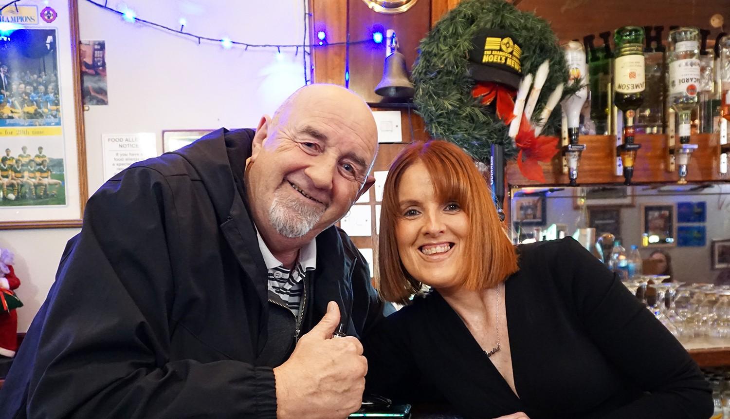 Shamrock Lounge regular Ger Coonan with Senior Bar staff member Denise McInerney on New Years eve.