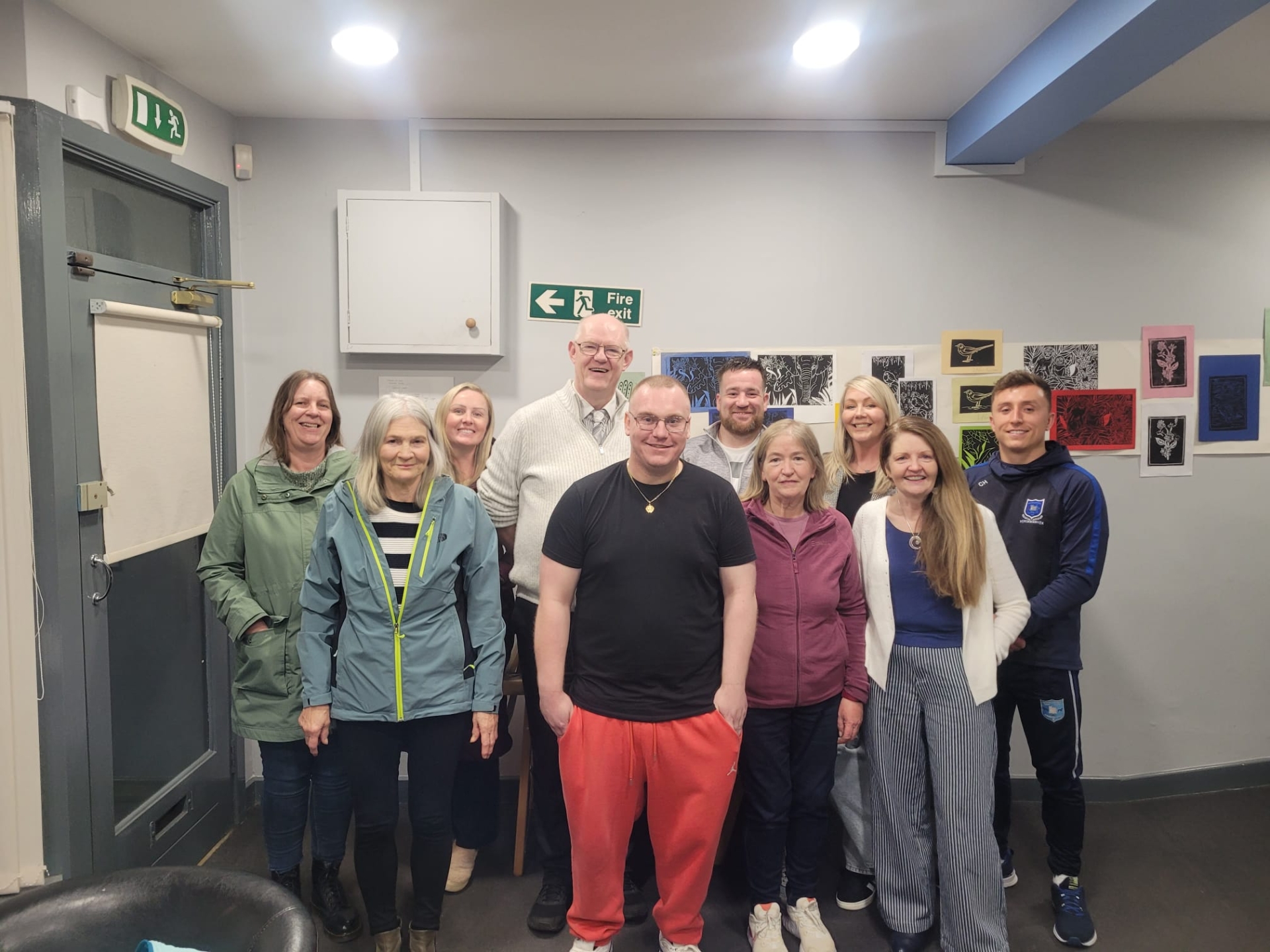 The walls of Carrick-on-Suir Youth & Community Centre are adorned at the moment with beautiful paintings, lino prints and a large mosaic created by a group of adult students for whom an interest in art has become a means to improve their mental health.