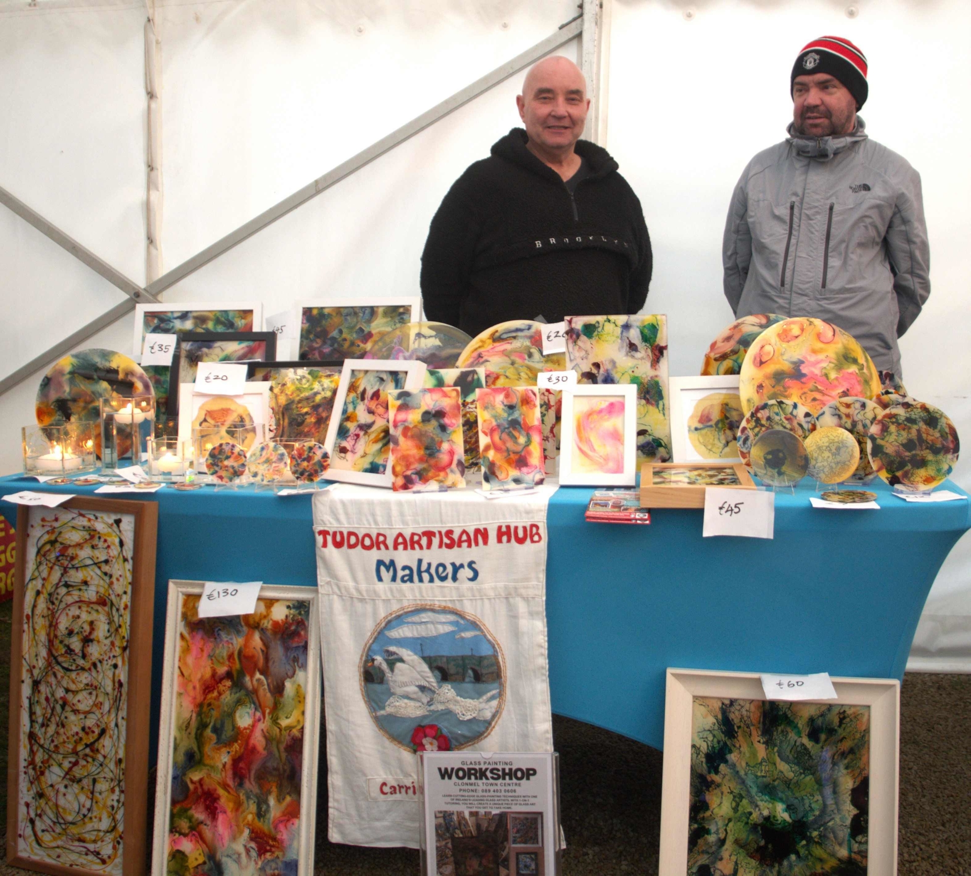 Richard O’Gorman and Tyrone Fennessy of O’Gorman Glass Clonmel at the Christmas Craft Market in Ormond Castle during the Tractors & Tudors Festival last Saturday.