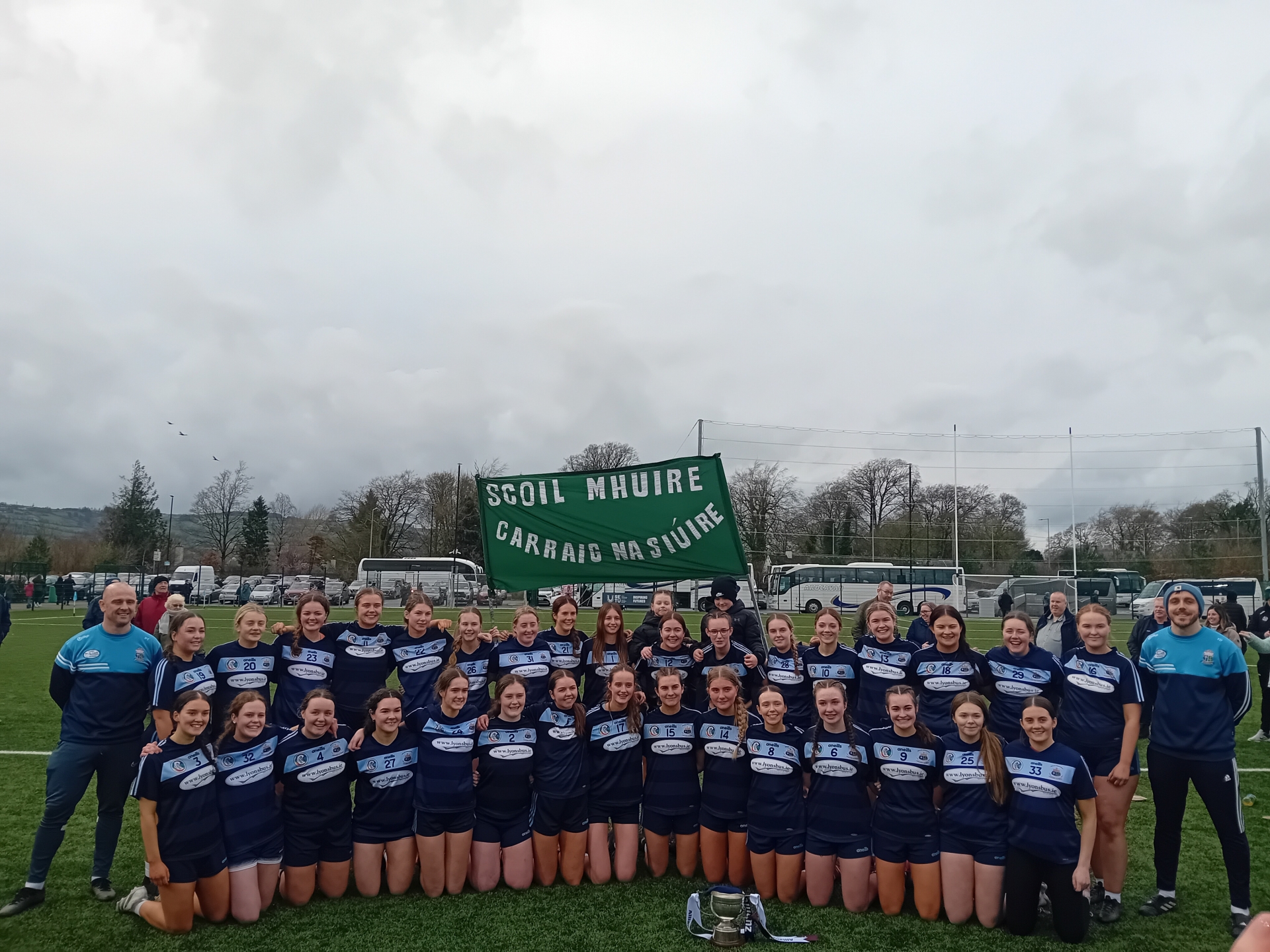 There were jubilant scenes in Carlow last Thursday as the senior camogie team of Carrick-on-Suir's Scoil Mhuire Secondary School clinched the All-Ireland Post Primary Schools Senior B Camogie title by defeating Presentation Wexford by 3 points in the final replay