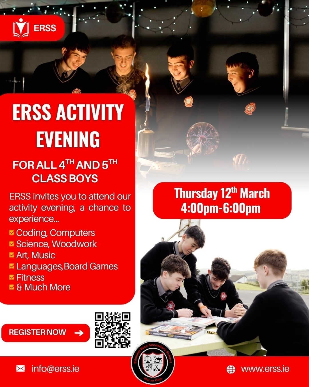 Edmund Rice Secondary School in Carrick-on-Suir is inviting 4th and 5th class primary school boys to its Activity Evening today (Thursday, March 12) from 4pm to 6pm.