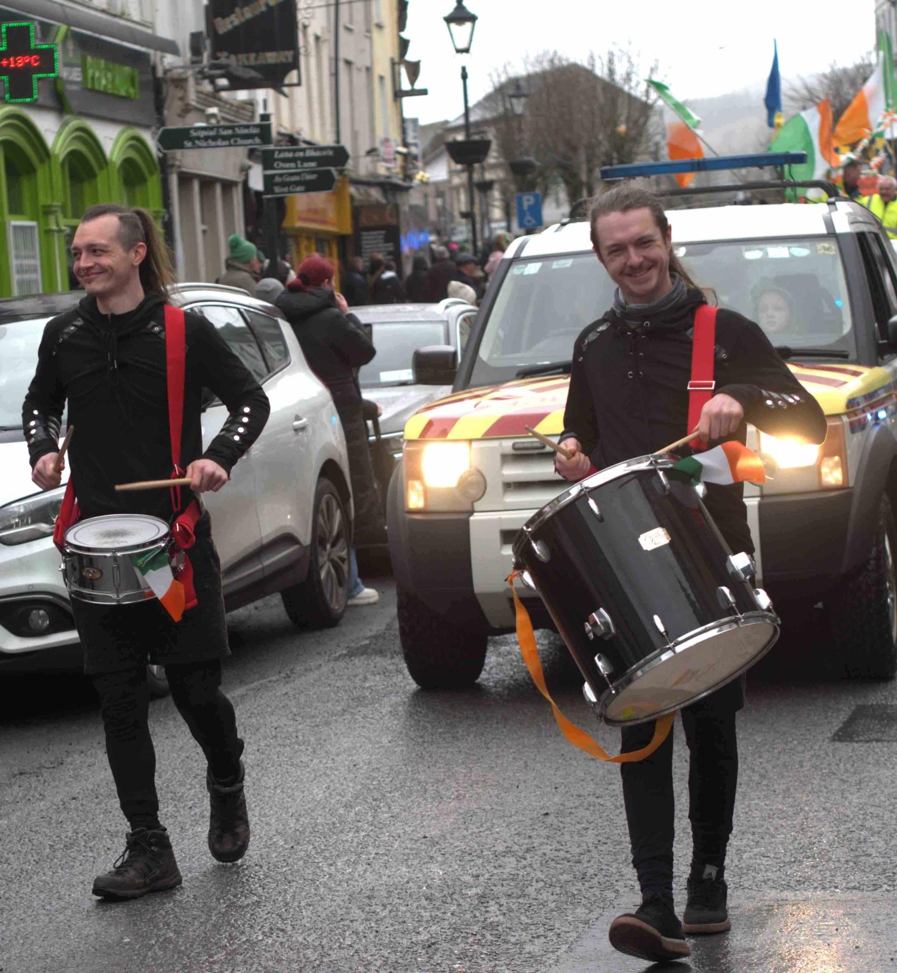 The Hit Machine drummers in action in Carrick-on-Suir's St Patrick's Day Parade