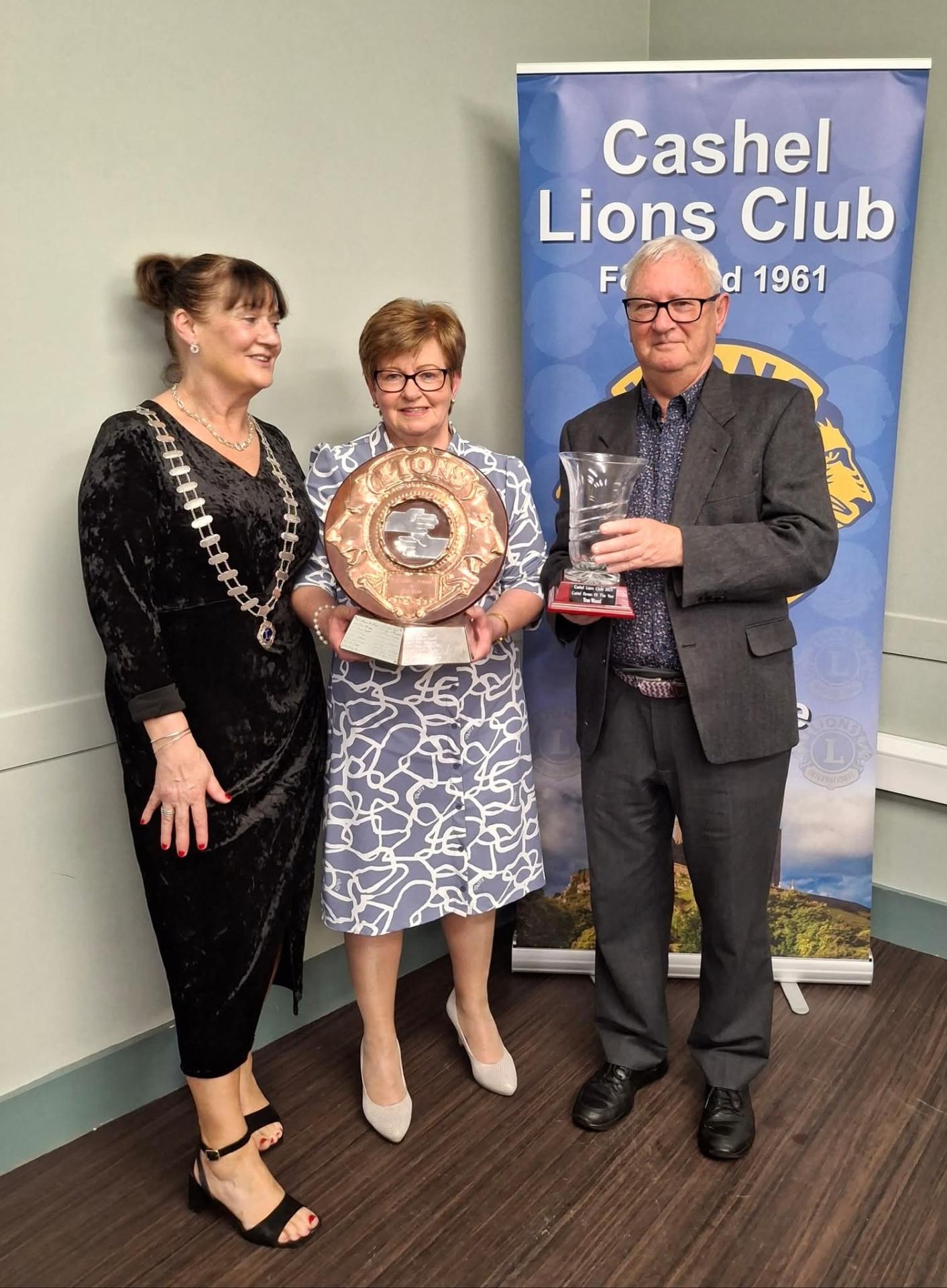 Monica Slattery (Cashel Lions Club President), with Marie Devitt and Tom Wood, the current and former Cashel Person of the Year.