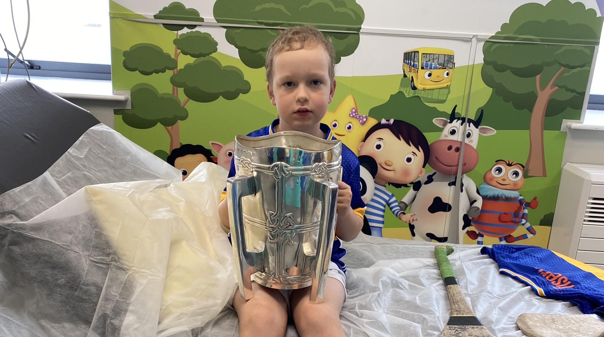 Young Jack Coffey pictured holding the Liam McCarthy cup.
