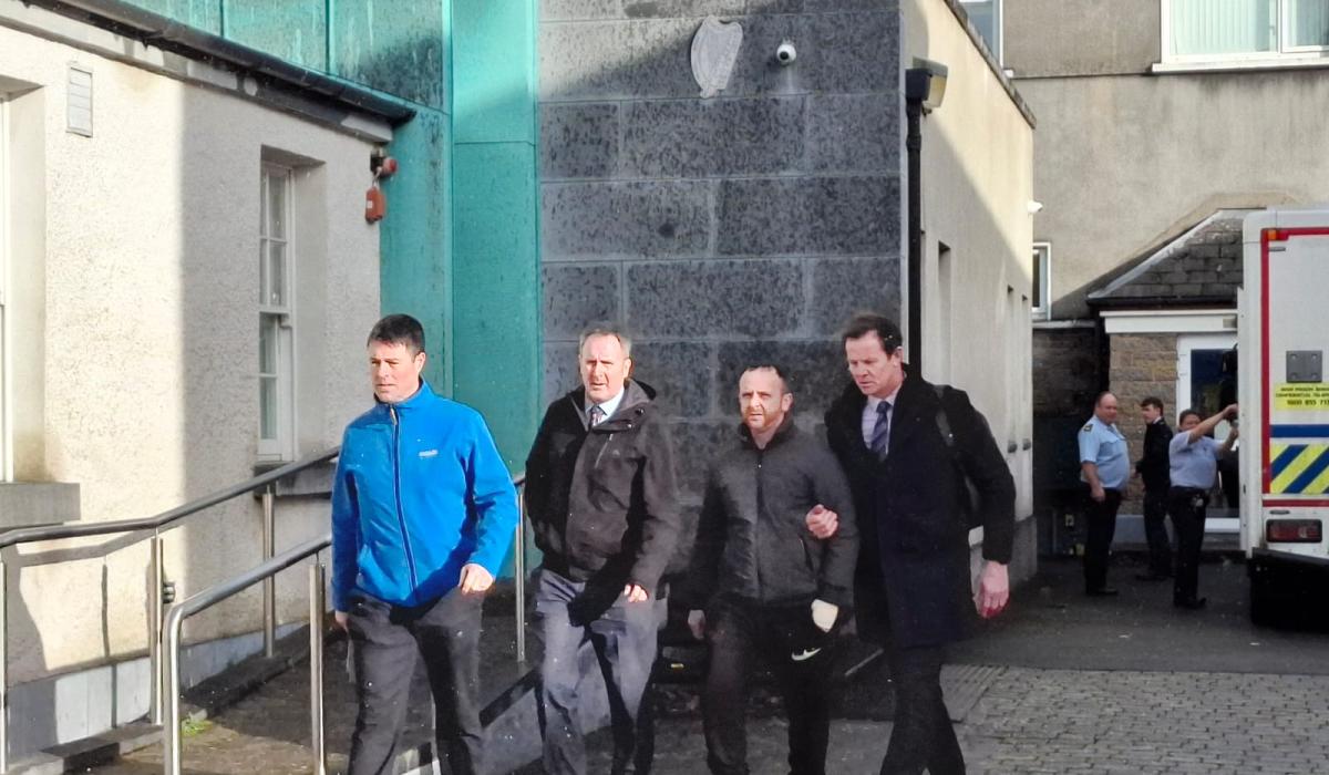 Sean Harding (second from right) walking into Thurles courthouse accompanied by Detective Conor Gleeson