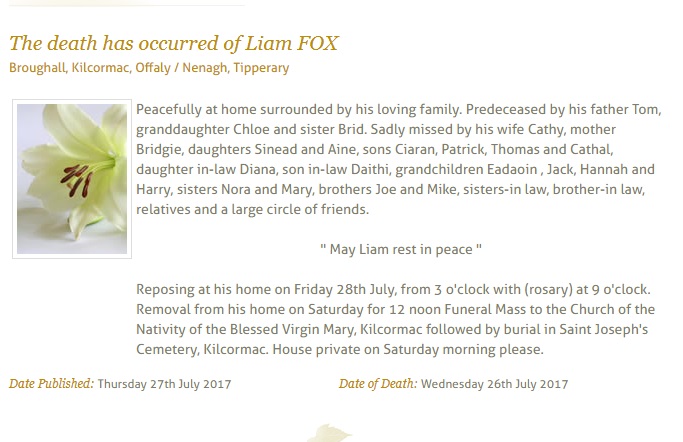 Chairman of Offaly Fianna Fail, Liam Fox, sadly passed away this evening