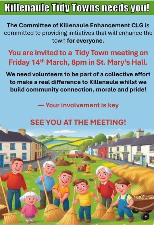 The Committee of Killenaule Enhancement CLG is hosting the Tidy Towns meeting.
