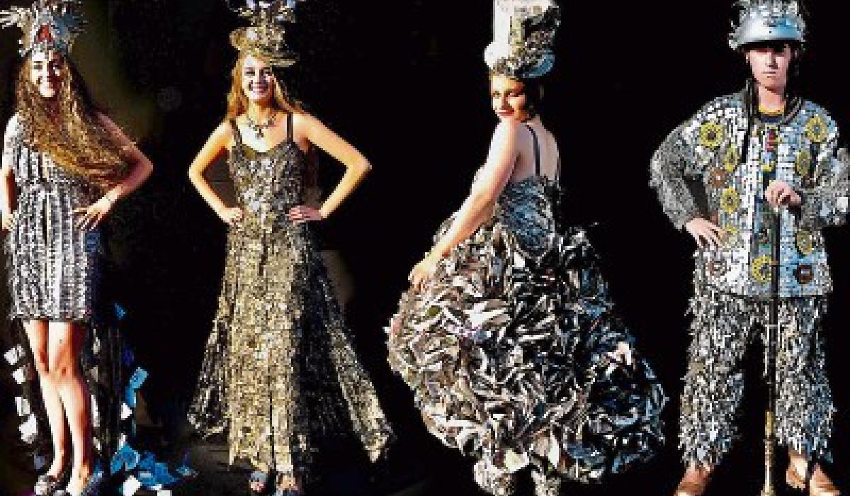 Pupils Emma Lyons modelling 'Reach Out'; Sadhbh Morrissey modelling 'Eufloria'; Abby White modelling 'Extra Extra, read all about it'; and Patrick Kennedy modelling 'Titanium.