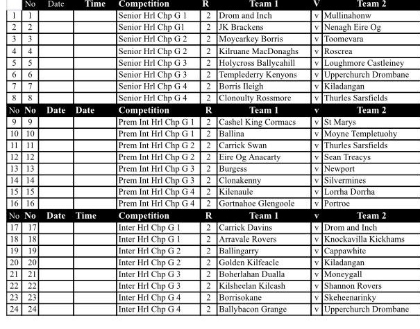 The second round of fixtures in the Tipperary hurling championship has been released. The games will be played on the weekend after next. Times and venues will be arranged over the coming days. Here are the fixtures in full: