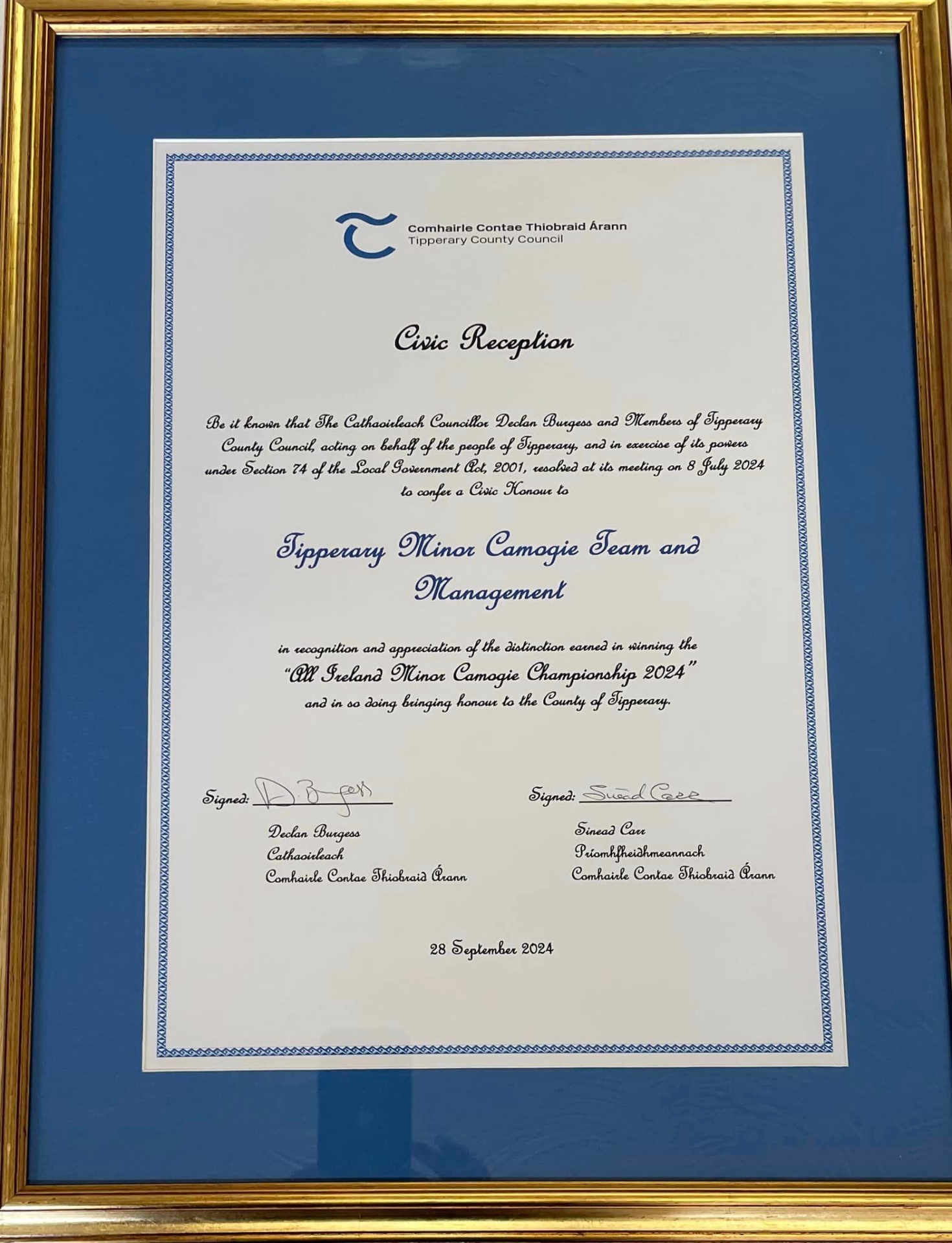 The Tipperary teams who won All-Ireland in 2024 were honoured by Tipperary County Council
