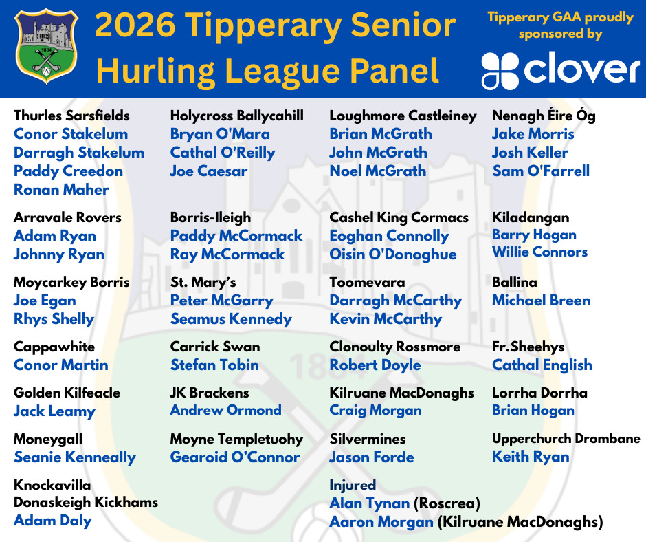 The Ballingarry man, Cahill, has also given an update on players who are injured, including Alan Tynan (Roscrea) and Aaron Morgan (Kilruane MacDonaghs).