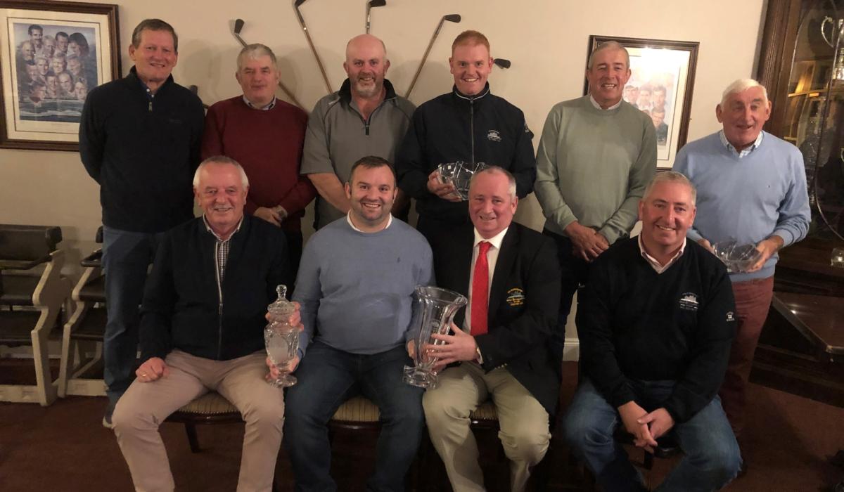 Pictured below Presentation of prizes for Memorial Trophy. Front l-r: Phil Ryan (Club President), Patrick Ryan (Winner), Richard O’Keeffe (Club Captain), Kevin O’Sullivan (Club Vice Captain). Back l-r: Sean O’Connor (4th), John O’Donovan (2nd Cat 3), Pat Ryan (1st Cat 1), Brian Slattery (Best Gross), Peter Hayes (1st Cat 2), Johnny Hannigan (1st Cat 3)