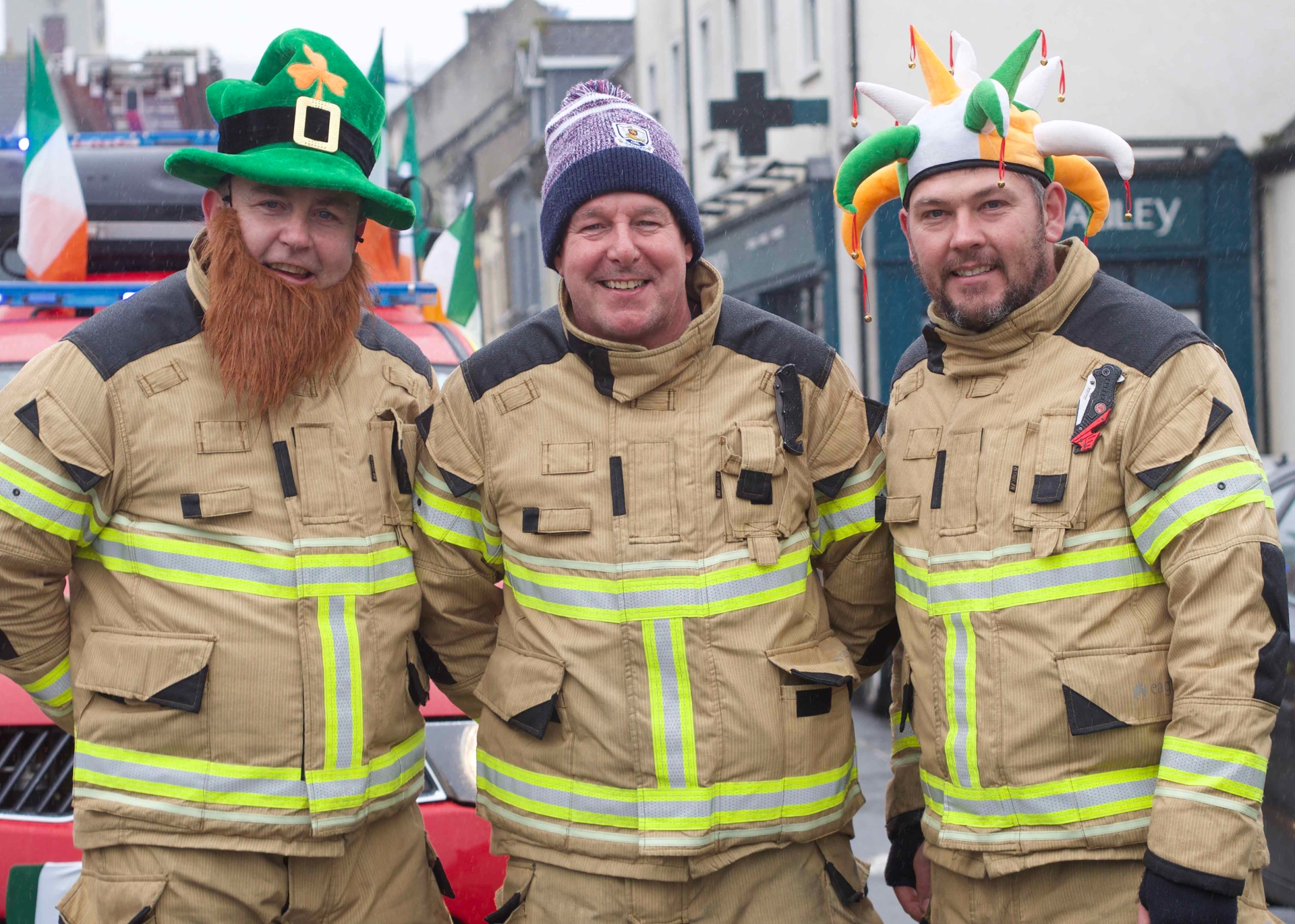 Caption: Tipperary Fire & Rescue Service members James Sweetman, Joe McAuley and James Hawkins pictured during the St. Patrick's Day Parade in Carrick-on-Suir last Friday
