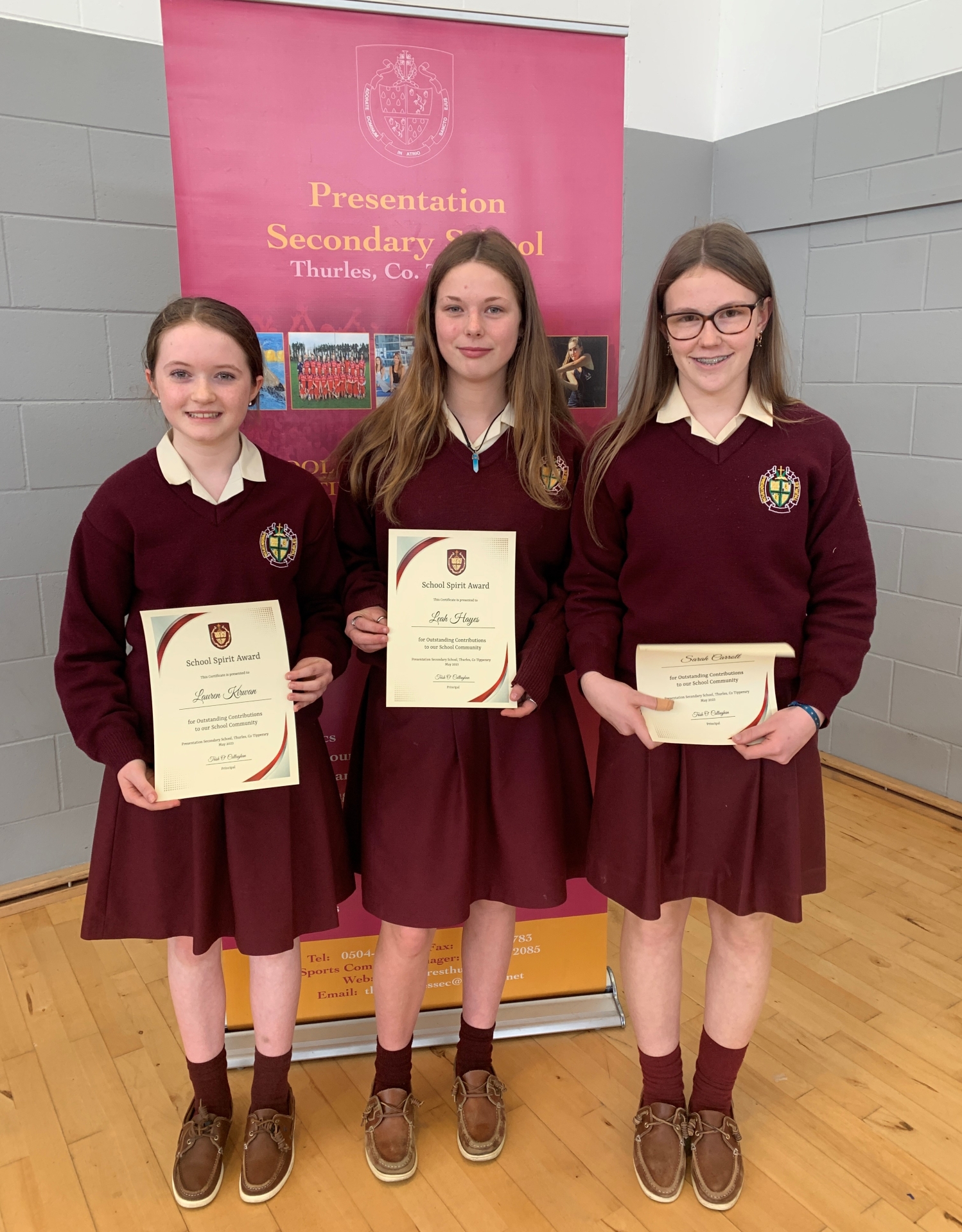 School Spirit of the Year Award - Second Year students Lauren Kirwan, Leah Delahunty and Sarah Carroll