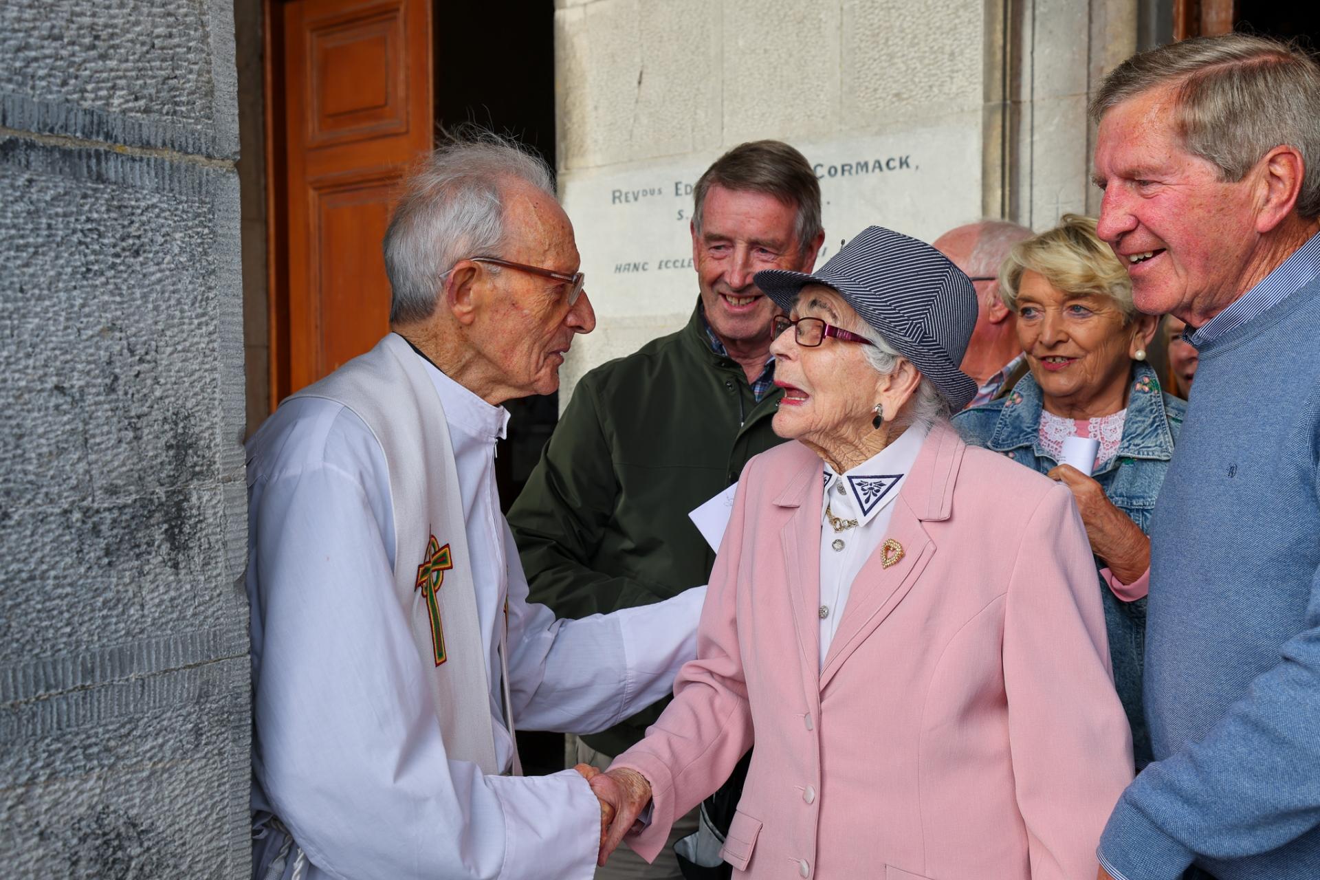 Monsignor James Ryan greets locals Biddy Moloughney, Tom Delahunty, Carmel and Danny Morrisey at the special ceremony