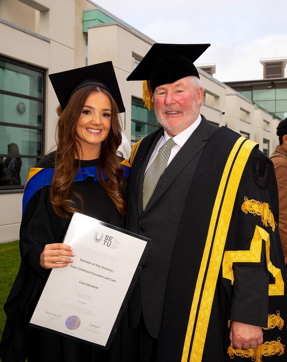 PICTURED: Ciara Monahan (left) from Tipperary is pictured alongside Doctor David Dempsey having graduated with a Bachelor of Arts (Honours) in Early Childhood Education and Care from South East Technological University’s campus in Carlow. PICTURES: MARY BROWNE