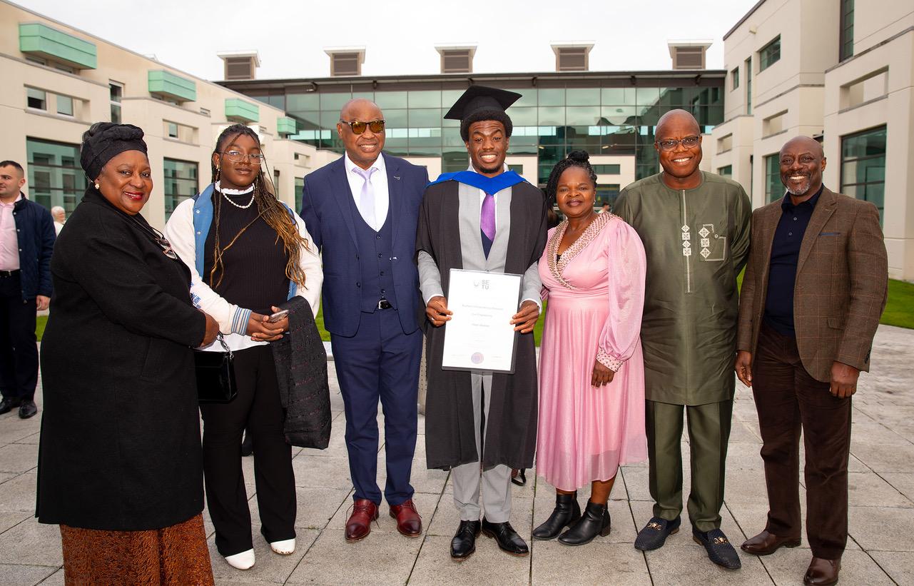 Peter Obidiran from Carrick-on-Suir in Tipperary is pictured with his family, having received his award for the Bachelor of Engineering (Honours) in Civil Engineering from South East Technological University’s campus in Carlow.