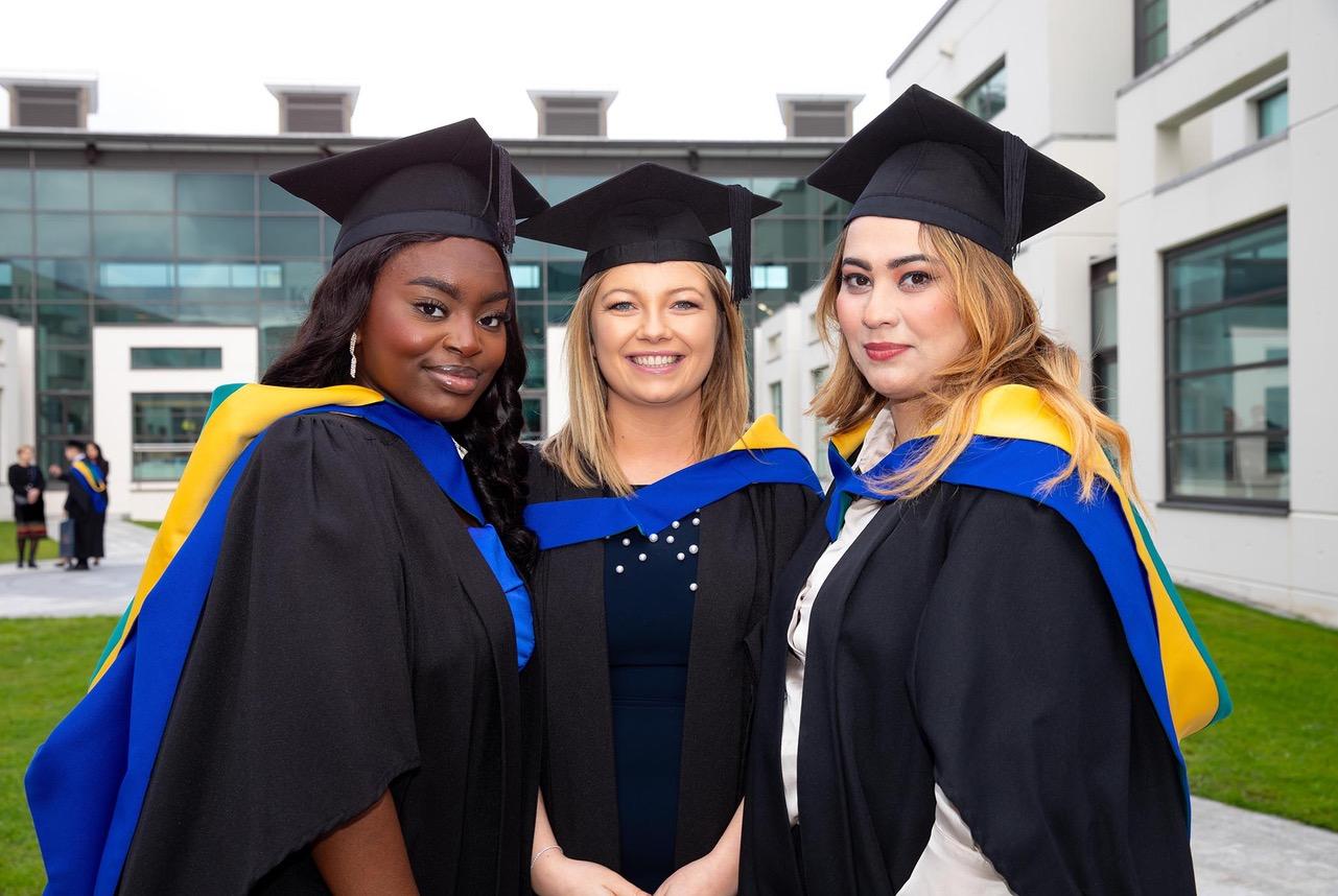 Victoria Aleshinloye (left) from Tipperary, Savannah Brady (center) from Carlow and Jehan Kodhim (right) from Athy, are pictured after graduating with a Bachelor of Business (Honours) in Management from South East Technological University’s campus in Carlow.