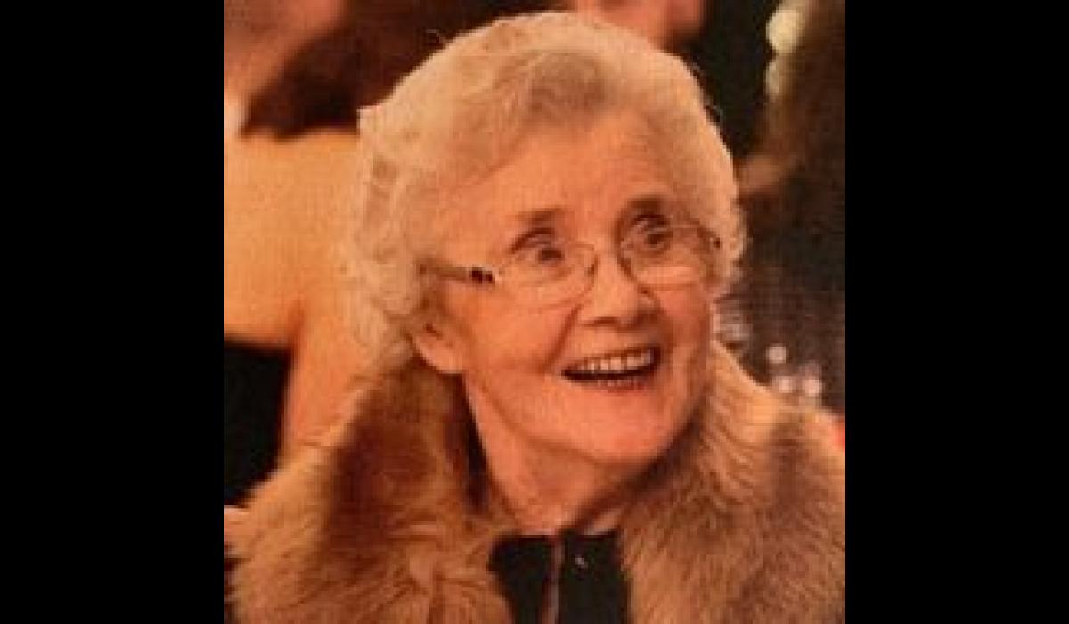 Deeply regretted by her heartbroken family Kathleen, Joan, Peadar, Geri, Seán, Mossy and Michael, her much loved Sarah, her sons-in-law and daughters-in-law, her 19 grandchildren and 11 great-grandchildren, nieces, nephews, relatives, friends and great neighbours.