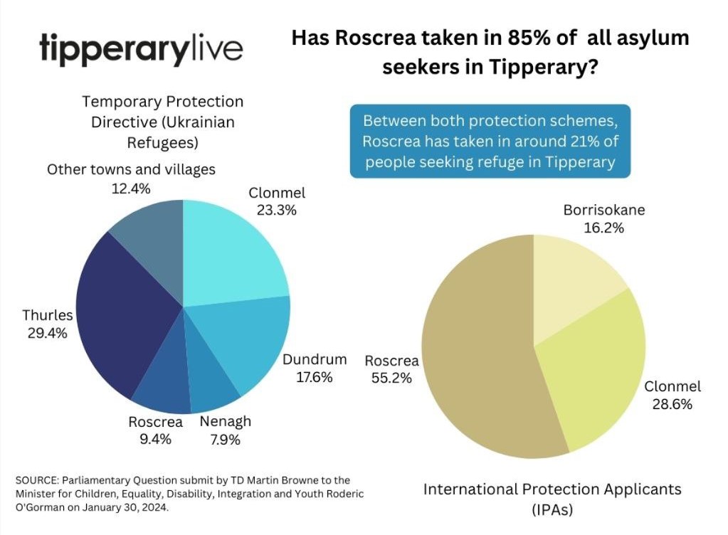 Roscrea does not house 85% of asylum seekers in Tipperary.