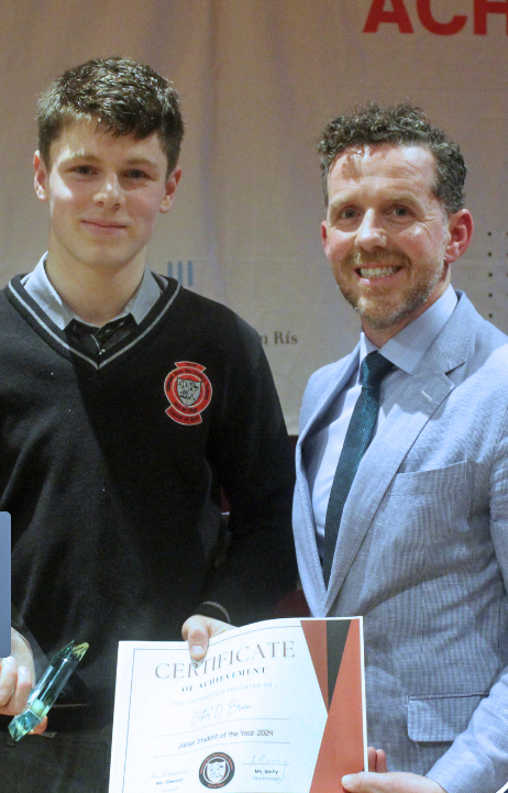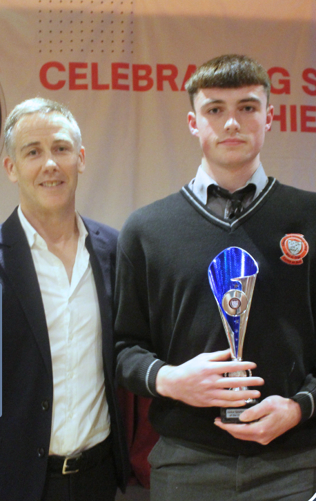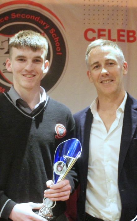 Edmund Rice Secondary School's Junior Student of the Year prize was awarded to Cathal O’Brien and presented by special guest, Professor John Nolan (pictured right).