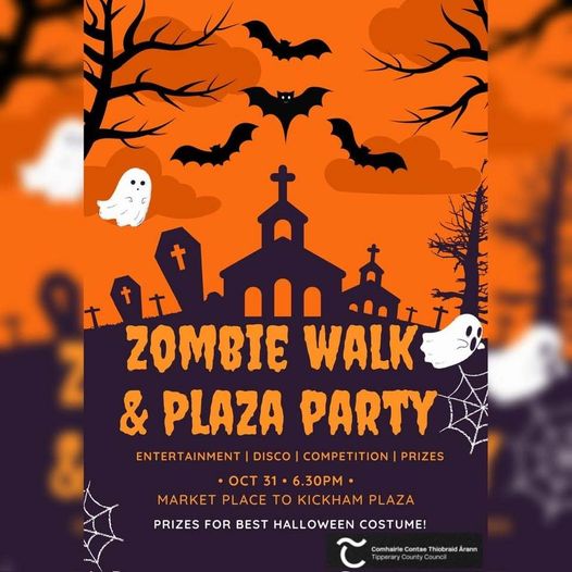 The event will commence with a Zombie Walk from Market Place to Kickham Plaza. Zombies, witches, ghouls