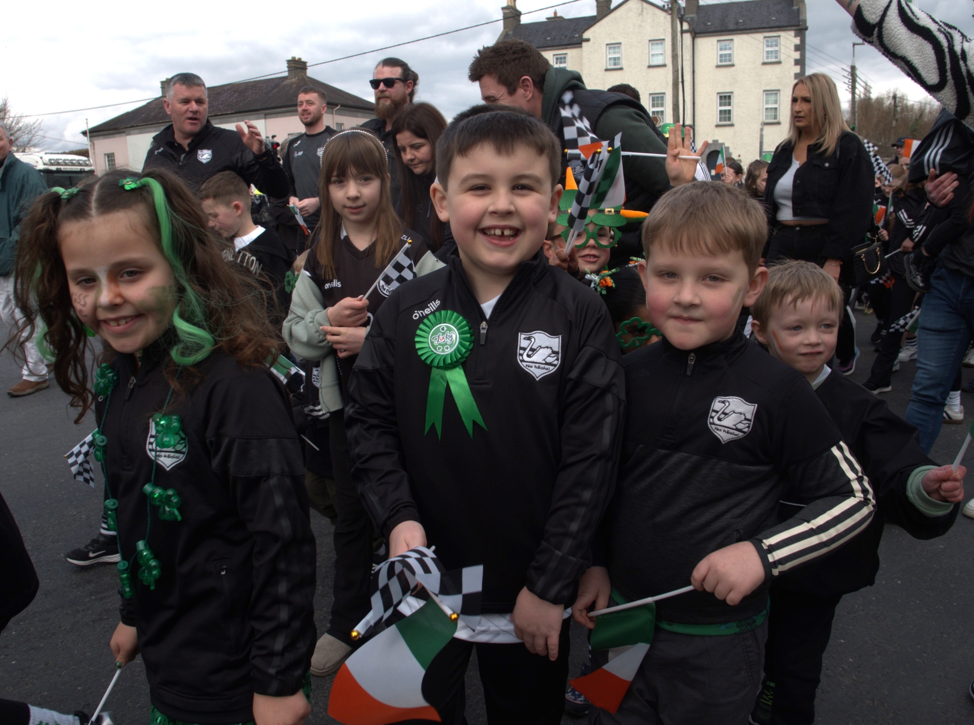 Young members of Carrick Swan GAA Club walking in Carrick-on-Suir St Patrick's Day Parade today (Sunday, March 16).