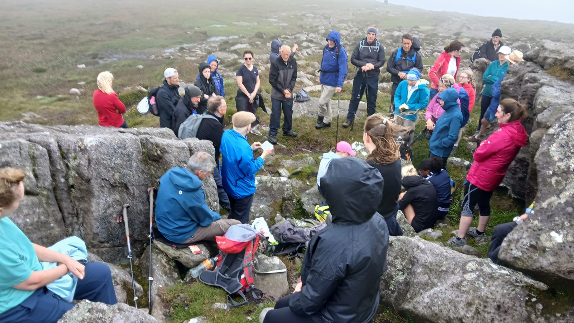 Robert Duggan addressing the hikers about the mythology and archaeology of Slievenamon