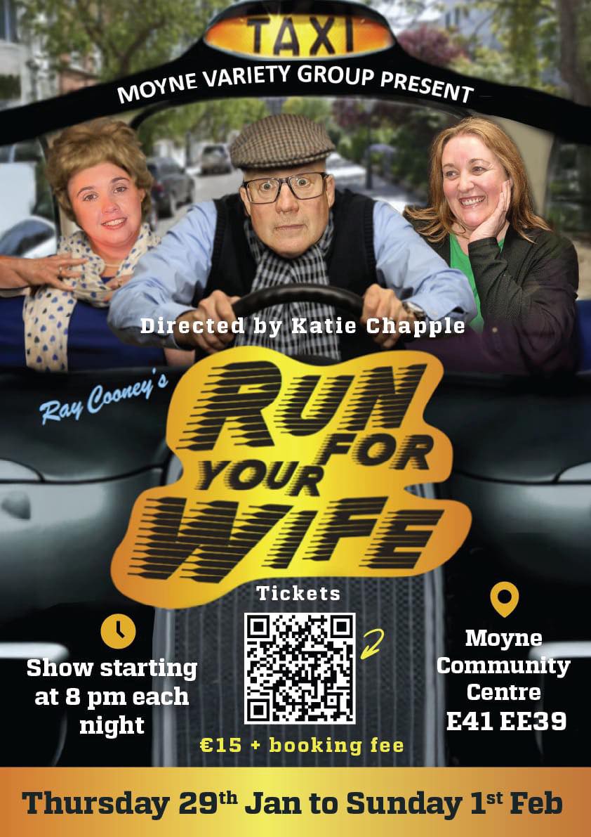 The production will be staged from Thursday January 29 to Sunday February 1, with performances beginning at 8pm each evening. The venue is Moyne Community Centre, E41 EE39.