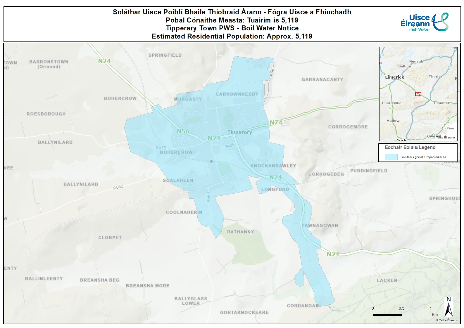 The notice applies to those supplied by the Cordangan plant in Tipperary Town and surrounding areas.