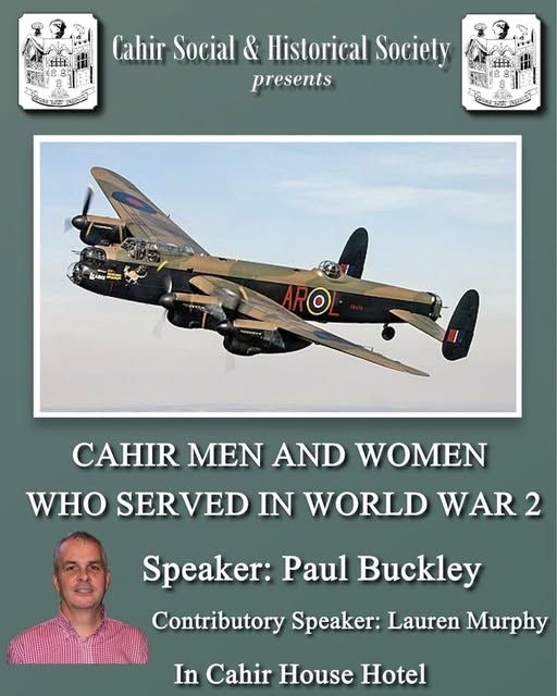 The presentation will be led by Paul Buckley, with contributions from Lauren Murphy. Together, they will delve into the personal stories of men and women from Cahir and the surrounding area who played their part during the Second World War, highlighting both military service and the impact on life at home.