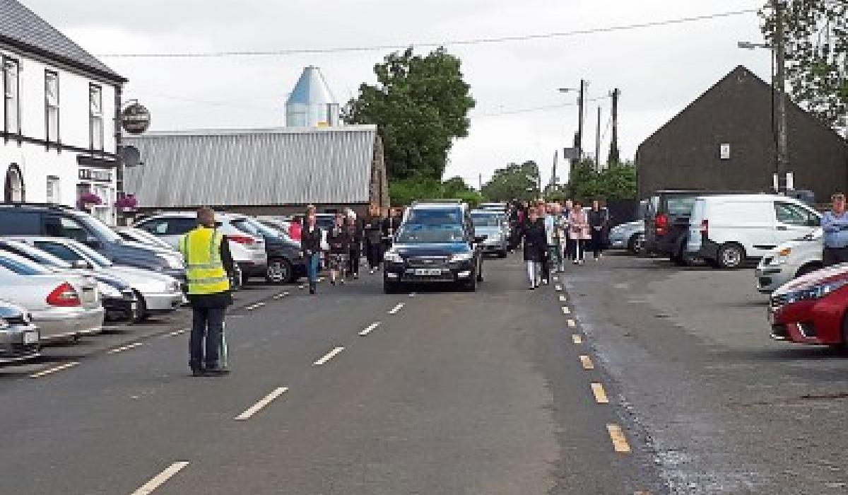 Tragic ride-on lawnmower accident victim, Joan Kinane, Toureen, Rossmore was laid to rest this week in Rossmore cemetery, beside Christ Our Saviour Church when an enormous turnout meant that the Churchyard was packed with sympathisers, not to mention the Church itself.
