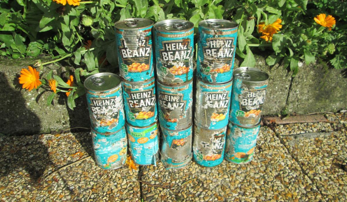 Thirteen out of date tins of beans were recently discovered by Sunday morning walkers in the undergrowth alongside "Martins Grove" on the Liskeveen Road.