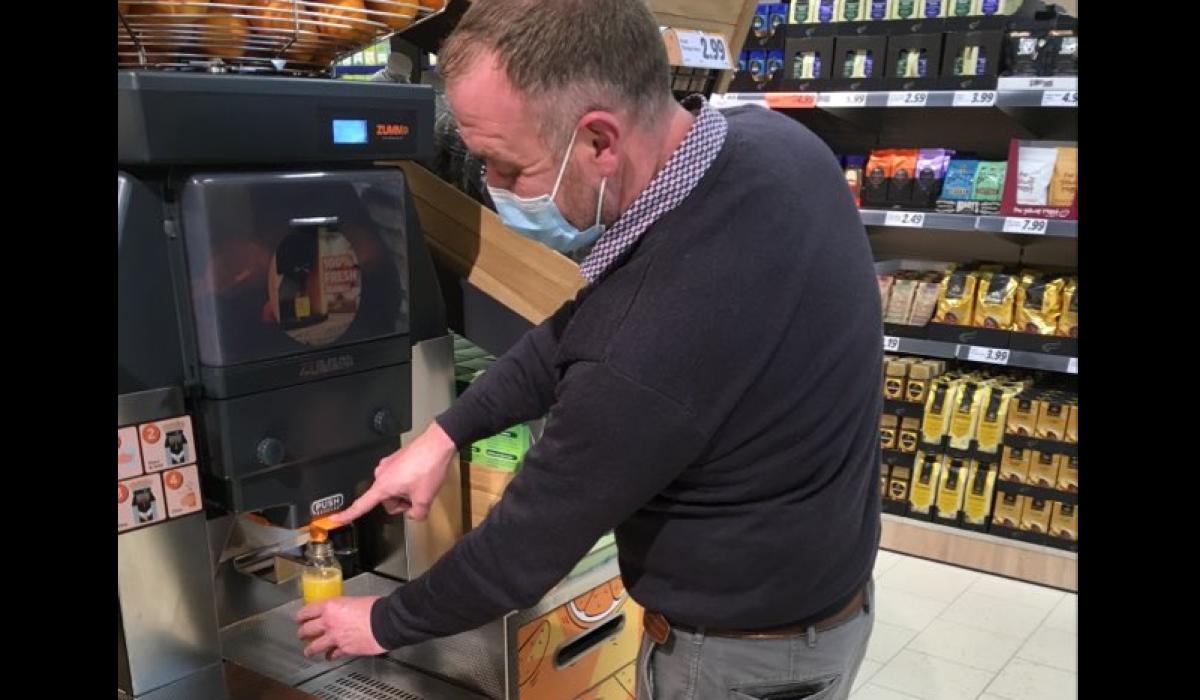 Lidl Regional Sales Manager, Dermot Ryan tries out the new juicer at their Tipperary store prior to opening