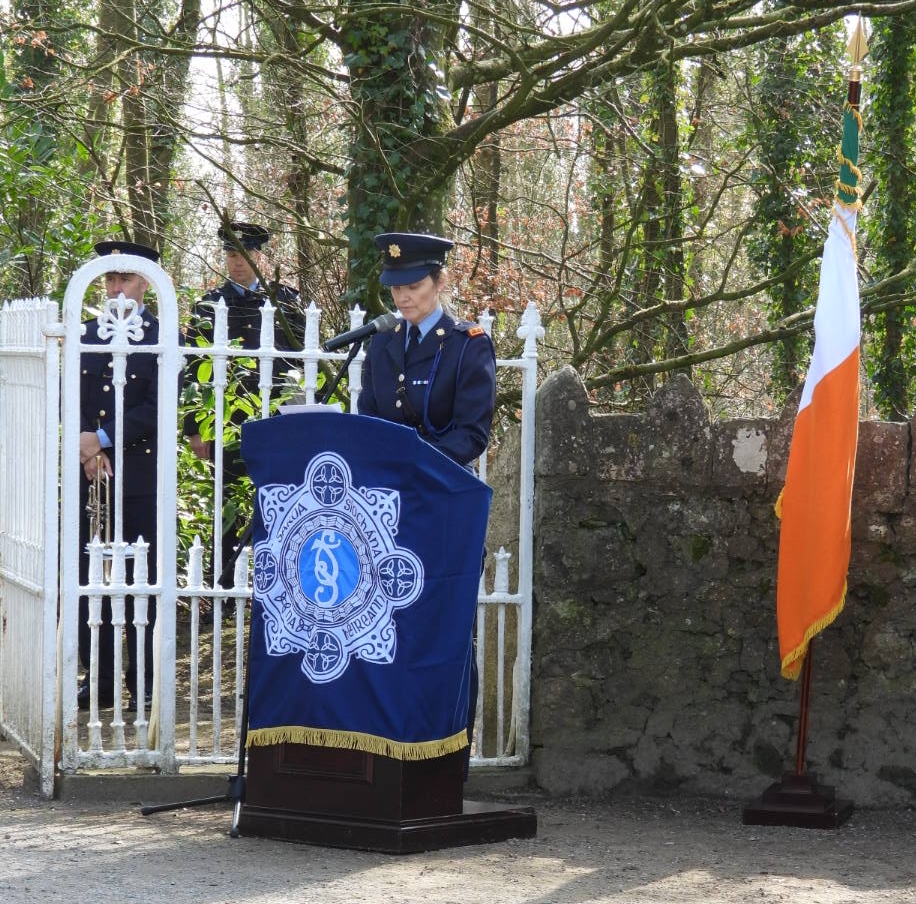 Assistant Superintendent Ciara Lee (pictured below), Tipperary Town addressed the distinguished gathering saying that in this the Centenary Year of An Garda Síochána it was important that the life of Superintendent Curtin’s should be remembered.